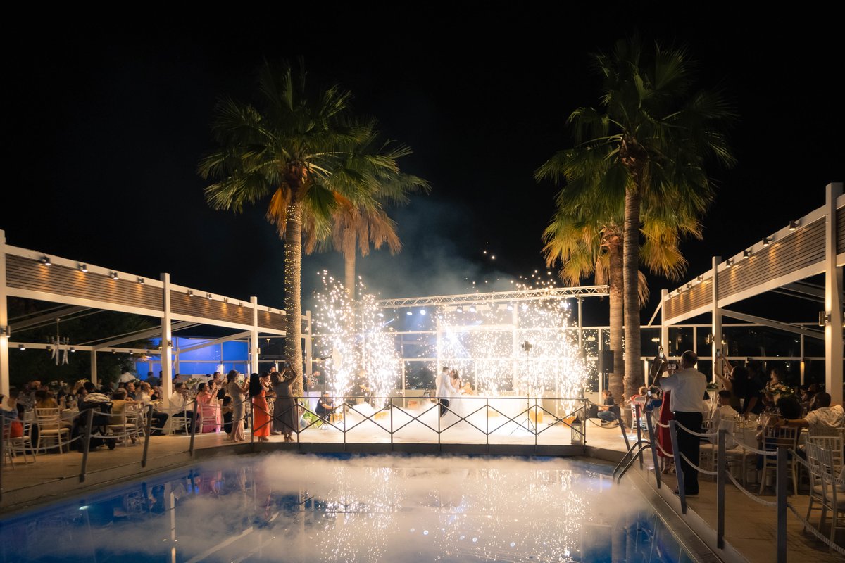 Προσφέρουμε ένα γραφικό σκηνικό που διαθέτει έναν εκπληκτικό χώρο πισίνας, ιδανικό για να δημιουργήσετε αξέχαστες αναμνήσεις. Ο χώρος της πισίνας μας περιβάλλεται από καταπράσινο τοπίο και ατμοσφαιρικό φωτισμό, δημιουργώντας μια μαγική ατμόσφαιρα καθώς η ημέρα μεταβαίνει στη νύχτα. Η αντανάκλαση του κρυστάλλινου νερού της πισίνας προσθέτει μια νότα ρομαντισμού στη γιορτή σας.