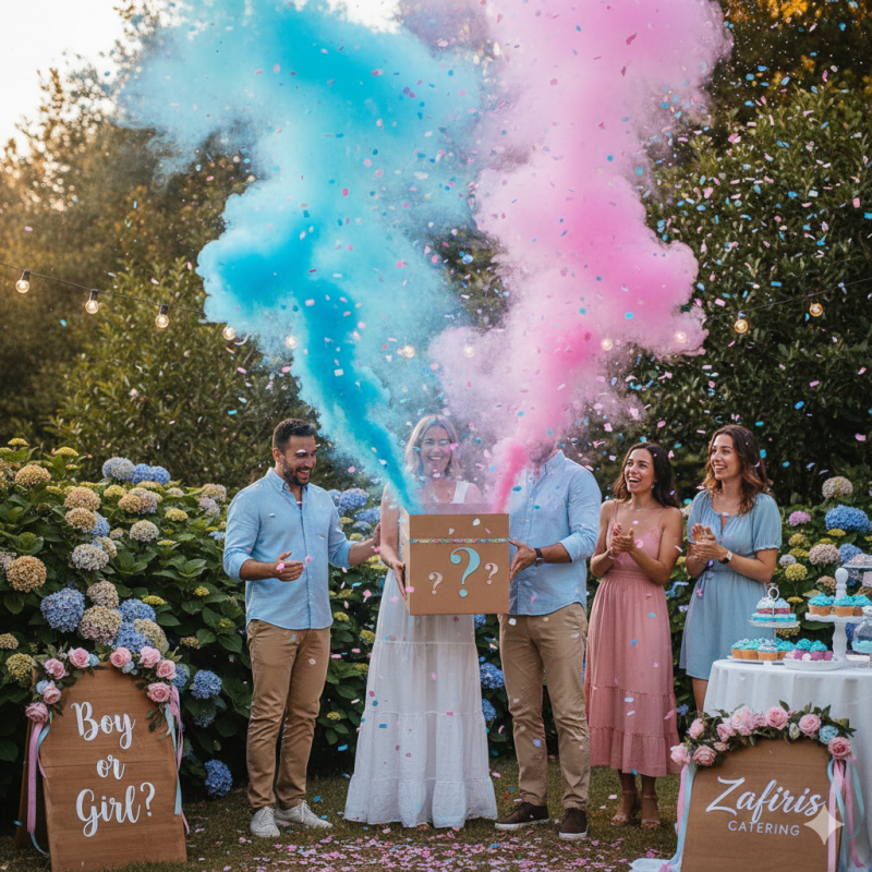 Με το Zafiris Catering, κάθε Gender Reveal Party γίνεται μια εμπειρία γεμάτη χαμόγελα, χρώμα και γεύση — από τη πρώτη μπουκιά μέχρι την στιγμή της μεγάλης αποκάλυψης!