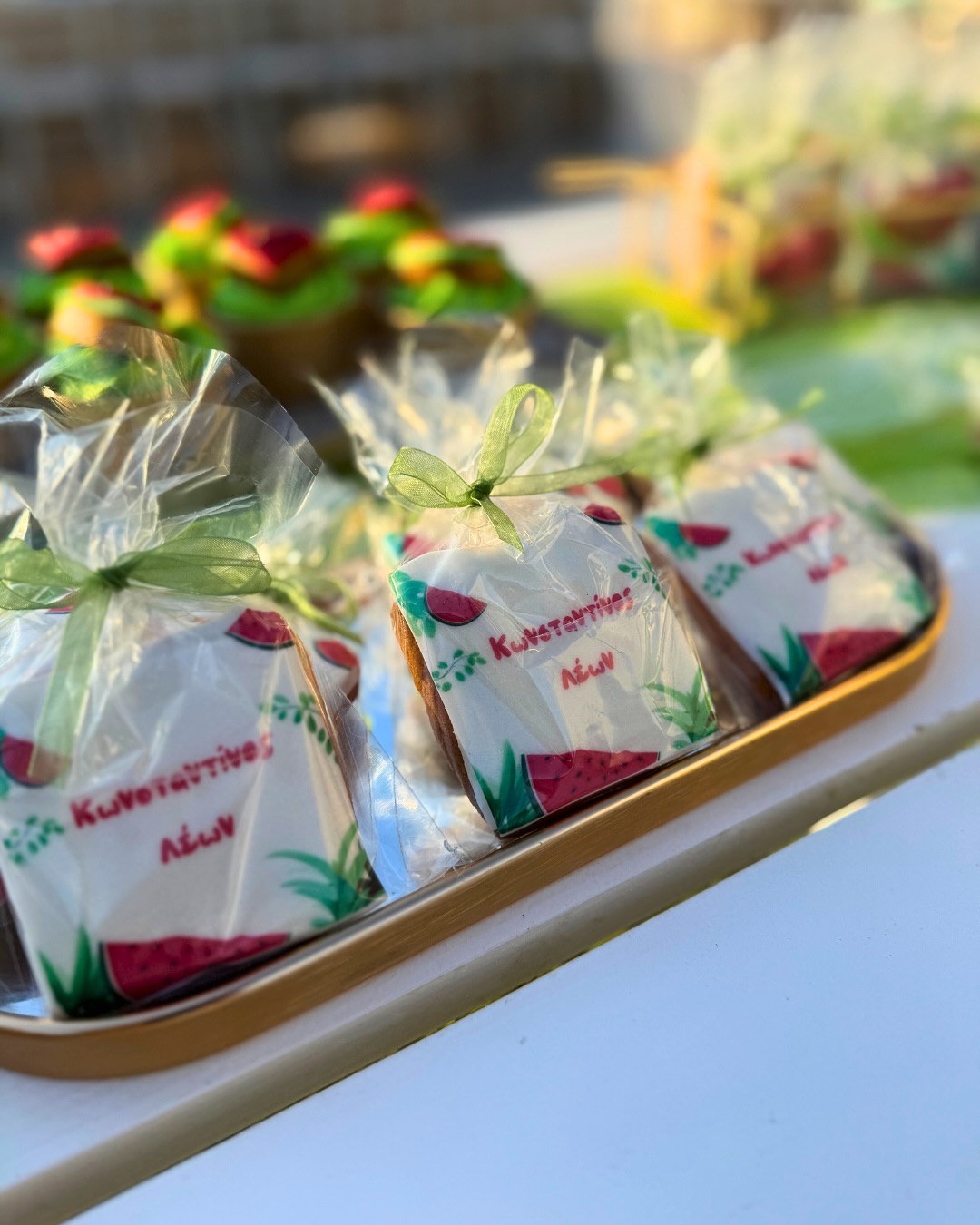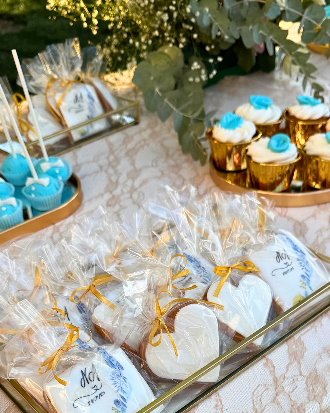 Δημιουργούμε θεματικά cupcakes, cake pops, μπεζέδες, marshmallows και μπισκότα γεμάτα φαντασία — ακόμη και μπισκότα με το όνομα του μωρού, για στιγμές που αξίζουν να μείνουν αξέχαστες.